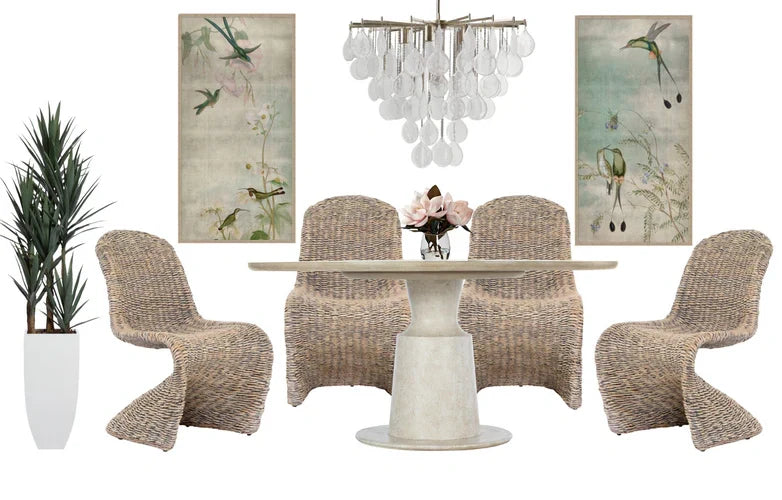 Starting at $3,193.00 (as designed)Casual coastal meets curated simplicity in this airy dining space anchored by weathered woods and... -